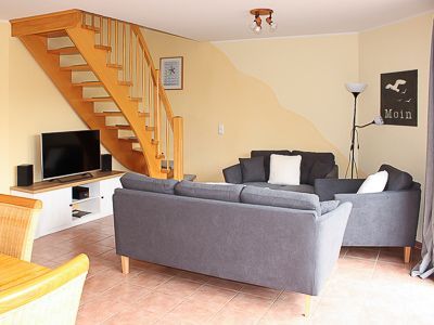 Das Wohnzimmer mit Flachbildfenseher mit Satellitenanlage und Stereoanlage lädt zum gemütlichen Beisammensein ein. Außerdem sorgt eine Fußbodenerwärmung in den kalten Monaten für behagliche Wärme.